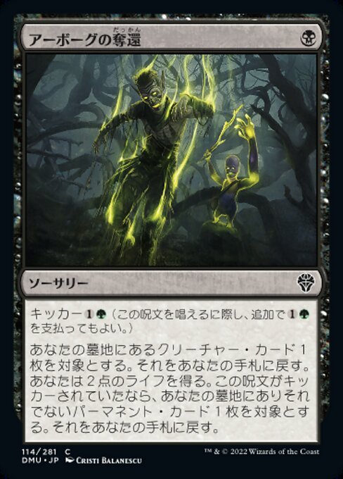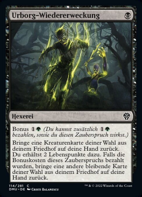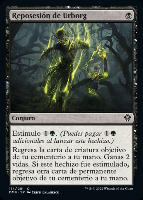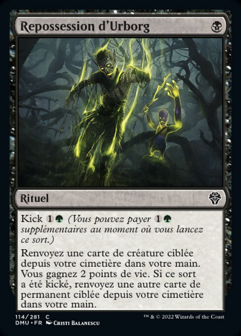 |  Variations— Parts— | Urborg RepossessionKicker  Return target creature card from your graveyard to your hand. You gain 2 life. If this spell was kicked, return another target permanent card from your graveyard to your hand.