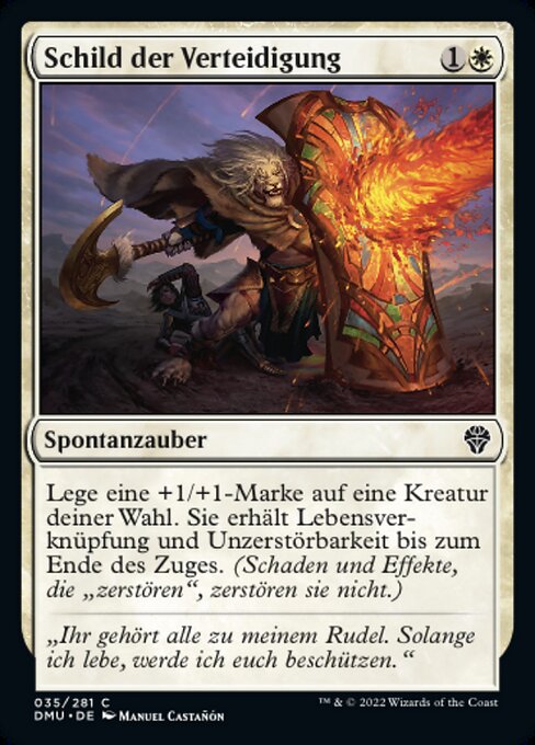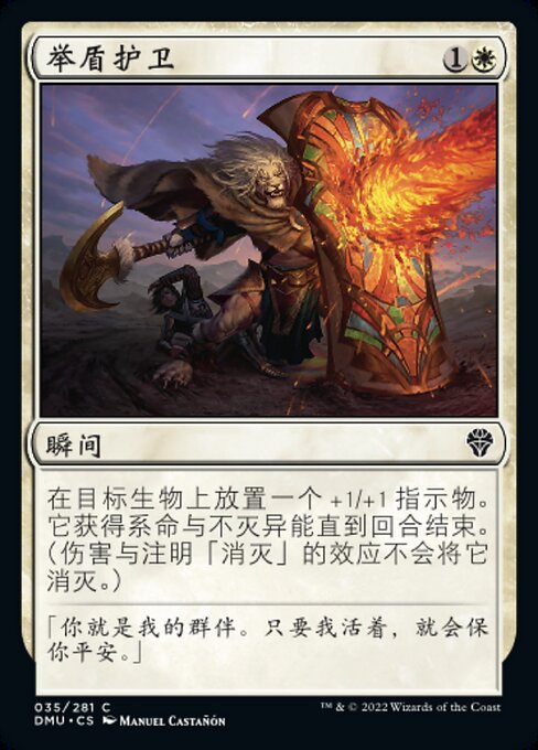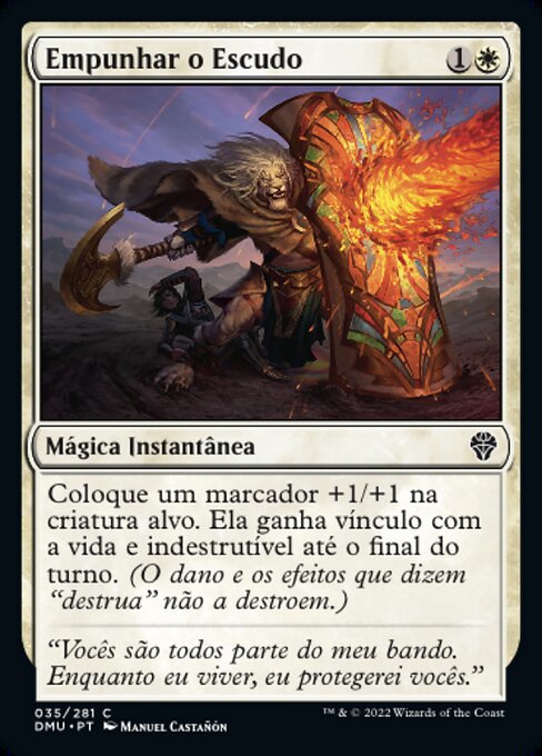 |  Variations— Parts— | Take Up the ShieldPut a +1/+1 counter on target creature. It gains lifelink and indestructible until end of turn. (Damage and effects that say "destroy" don't destroy it.)