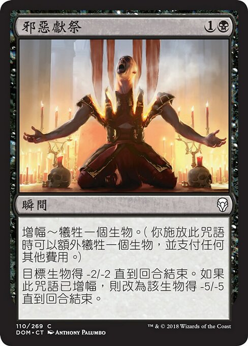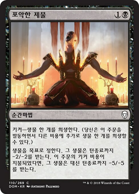 |  Variations— Parts— | Vicious OfferingKicker—Sacrifice a creature. (You may sacrifice a creature in addition to any other costs as you cast this spell.) Target creature gets -2/-2 until end of turn. If this spell was kicked, that creature gets -5/-5 until end of turn instead.