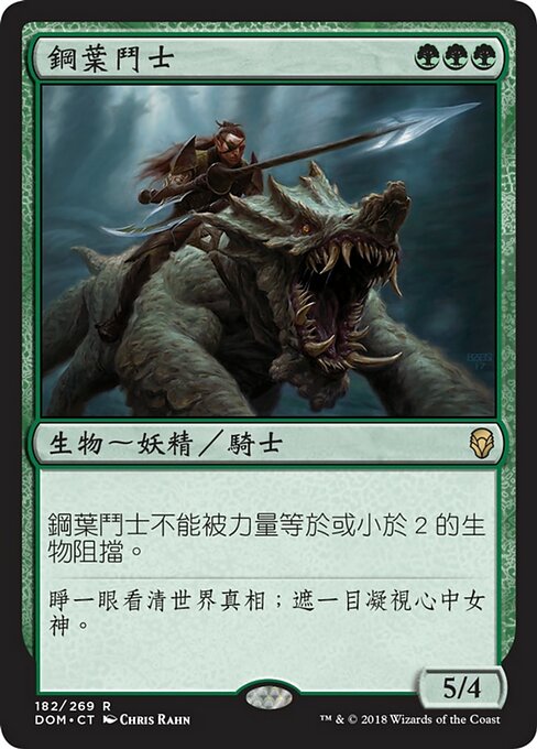 |  Variations— Parts— | Steel Leaf Champion5 / 4 This creature can't be blocked by creatures with power 2 or less.
