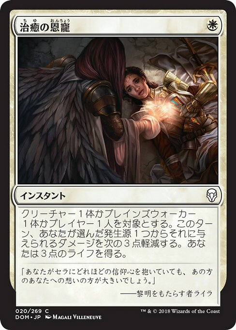 ![]() Variations— Parts— | Healing GracePrevent the next 3 damage that would be dealt to any target this turn by a source of your choice. You gain 3 life.
