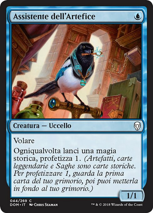 ![]() Variations— Parts— | Artificer's Assistant1 / 1 Flying Whenever you cast a historic spell, scry 1. (Artifacts, legendaries, and Sagas are historic. To scry 1, look at the top card of your library, then you may put that card on the bottom.)