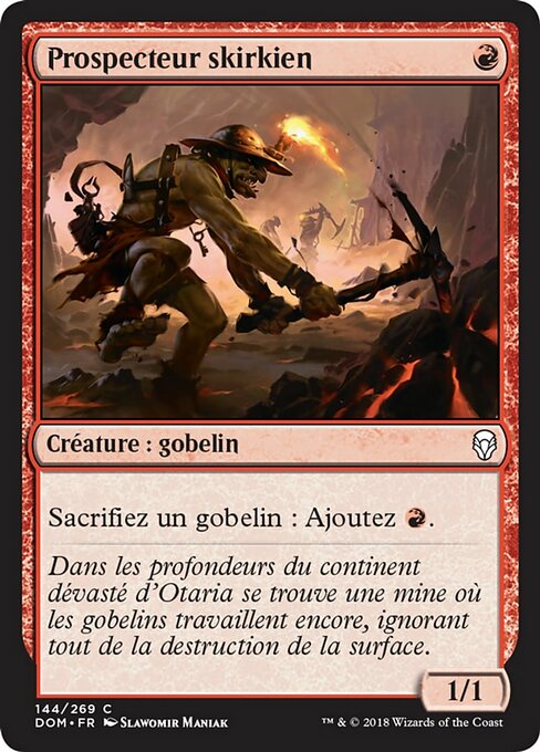 LegalitiesLegal Duel Brawl Penny Predh Legacy Modern Pauper Pioneer Vintage Historic Timeless Commander Gladiator Premodern Oathbreaker Paupercommander Not Legal Future Alchemy Standard Oldschool Standardbrawl RulingsYou can sacrifice any Goblin you control to activate Skirk Prospector’s activated ability, including Skirk Prospector itself. Note that once you sacrifice Skirk Prospector, you won’t be able to activate its ability again, so if you’d like to sacrifice multiple Goblins including Skirk Prospector for mana, be sure to sacrifice Skirk Prospector last.