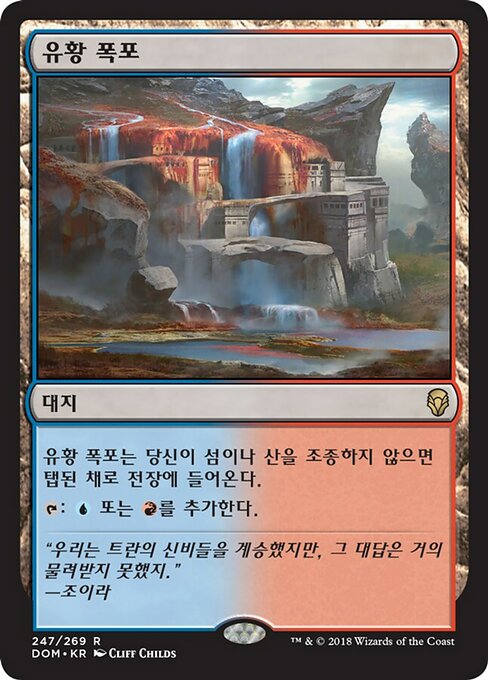 |  Variations— Parts— | Cascata SulfureaLa Cascata Sulfurea entra nel campo di battaglia TAPpata a meno che tu non controlli un'Isola o una Montagna.