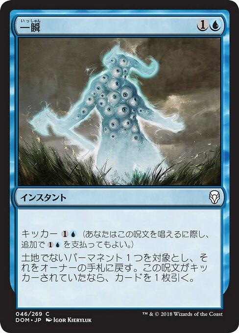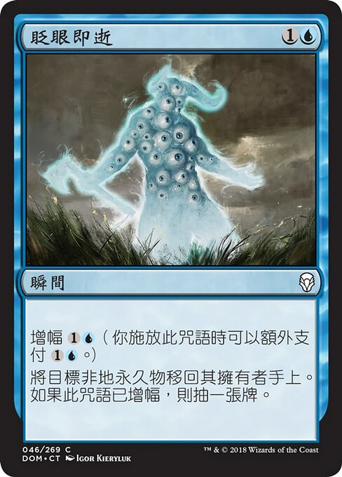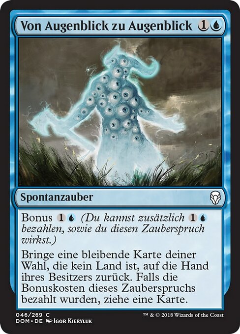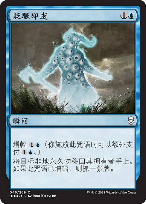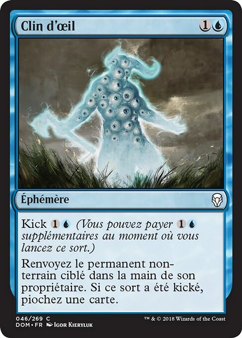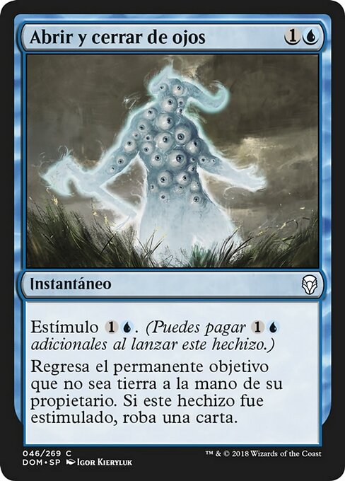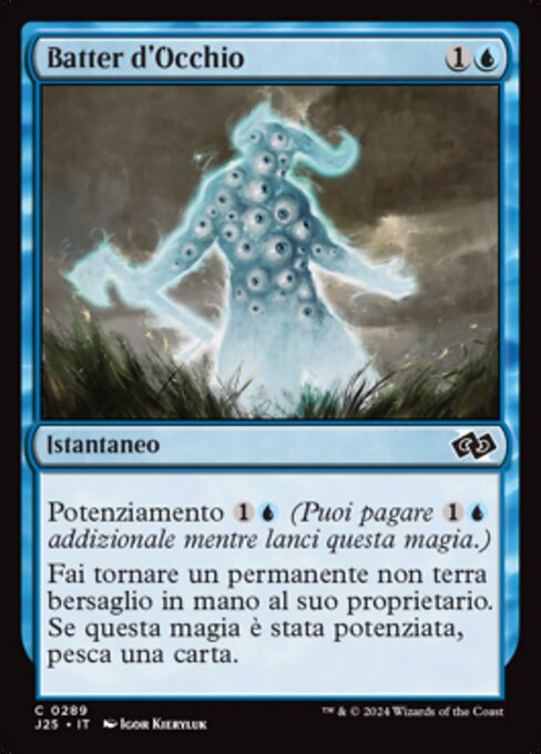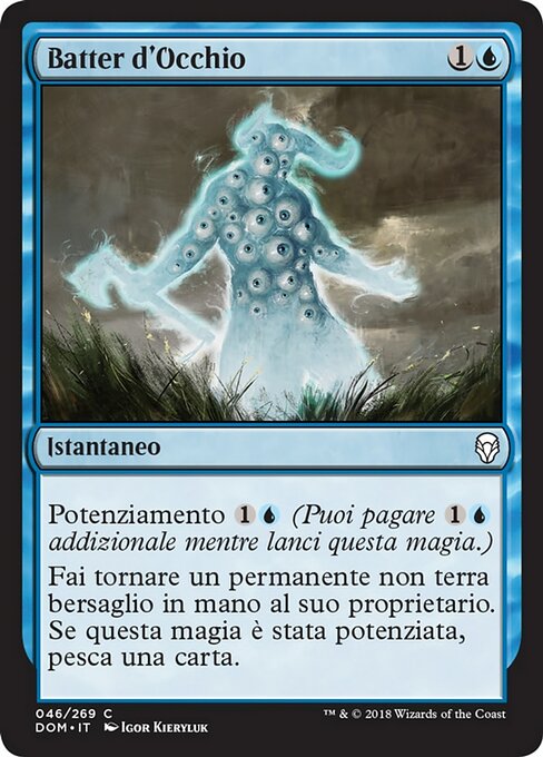![]() Variations— Parts— | Batter d'OcchioPotenziamento Fai tornare un permanente non terra bersaglio in mano al suo proprietario. Se questa magia è stata potenziata, pesca una carta.