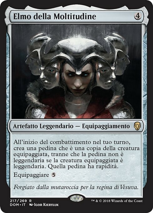 ![]() Variations— Parts— | 多勢の兜あなたのターンの戦闘の開始時に、装備しているクリーチャーが伝説であってもそのトークンは伝説ではないことを除き、装備しているクリーチャーのコピーであるトークンを1体生成する。そのトークンは速攻を得る。 装備