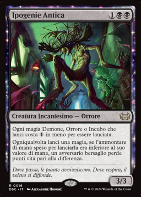 ![]() Variations : 1Parts— | Ancient Cellarspawn3 / 3 Each spell you cast that's a Demon, Horror, or Nightmare costs Whenever you cast a spell, if the amount of mana spent to cast it was less than its mana value, target opponent loses life equal to the difference.