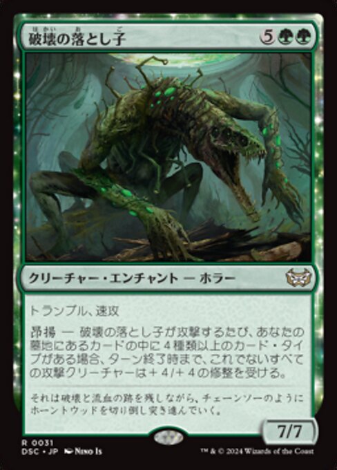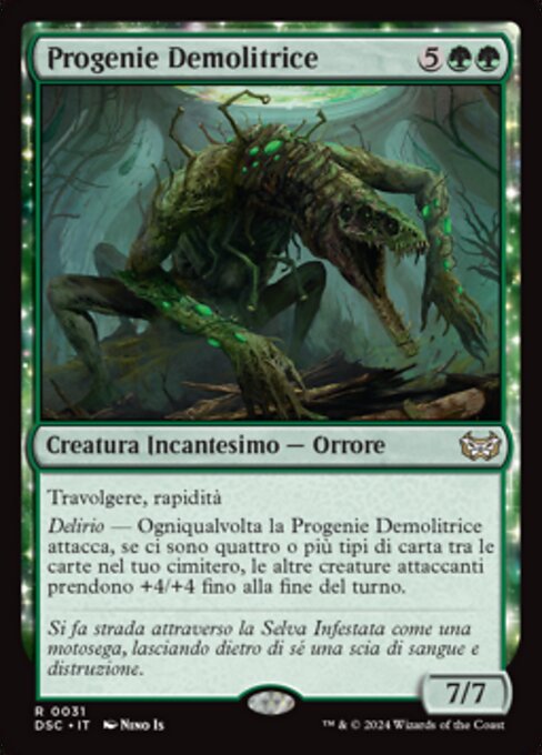 ![]() Variations : 1Parts— | Demolisher Spawn7 / 7 Trample, haste Delirium — Whenever this creature attacks, if there are four or more card types among cards in your graveyard, other attacking creatures get +4/+4 until end of turn.
