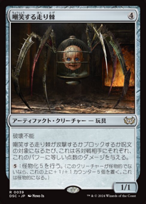 ![]() Variations : 1Parts— | Giggling Skitterspike1 / 1 Indestructible Whenever this creature attacks, blocks, or becomes the target of a spell, it deals damage equal to its power to each opponent.