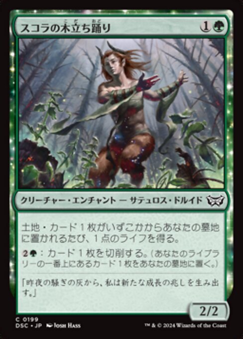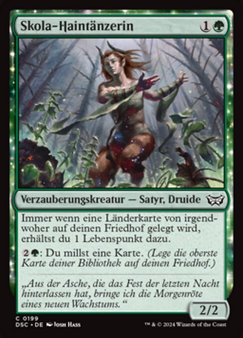 |  Variations— Parts— | Danzatrice del Boschetto di Skola2 / 2 Ogniqualvolta una carta terra viene messa nel tuo cimitero da qualsiasi zona, guadagni 1 punto vita.