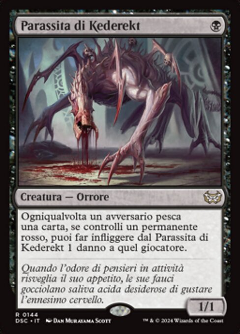 |  Variations— Parts— | ケデレクトの寄生魔1 / 1 対戦相手1人がカード1枚を引くたび、あなたが赤のパーマネントをコントロールしている場合、あなたは「ケデレクトの寄生魔はそのプレイヤーに1点のダメージを与える。」を選んでもよい。