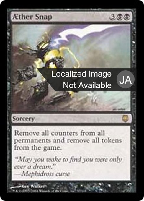![]() Variations— Parts— | Chasquido del éterRemueve todos los contadores de todos los permanentes y remueve todas las fichas del juego.