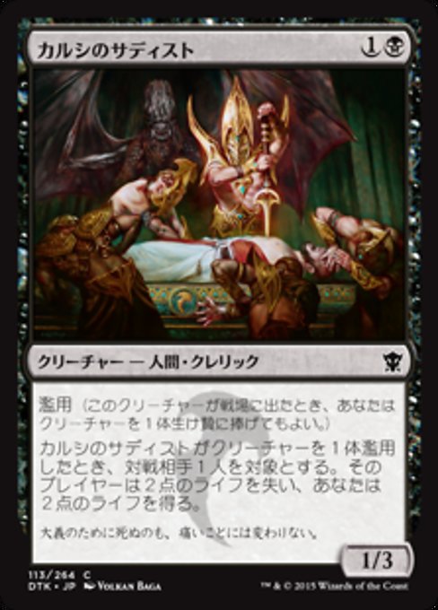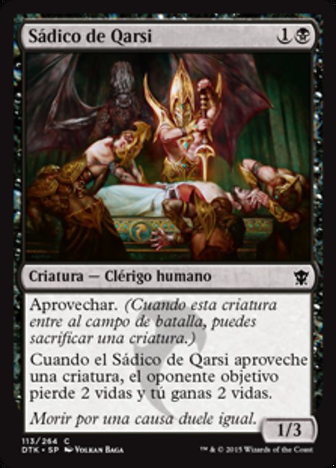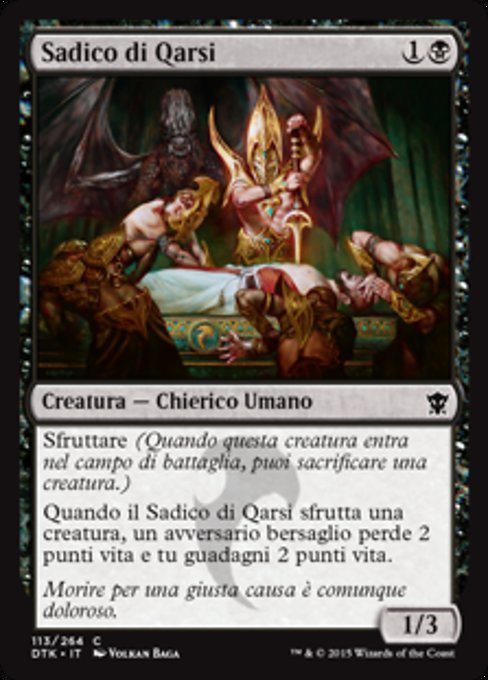 |  Variations— Parts— | Qarsi Sadist1 / 3 Exploit (When this creature enters, you may sacrifice a creature.) When this creature exploits a creature, target opponent loses 2 life and you gain 2 life.