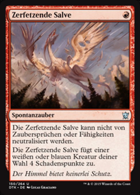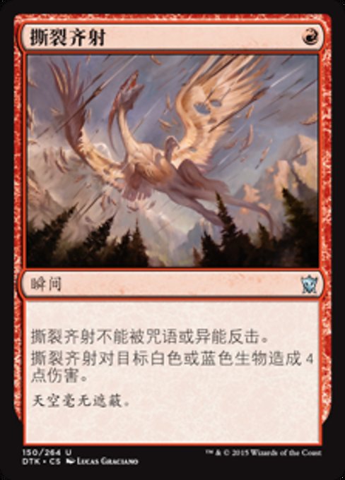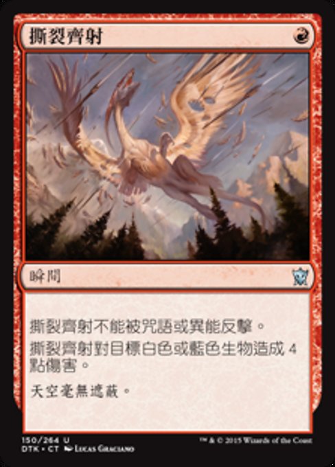 ![]() Variations— Parts— | Rending VolleyThis spell can't be countered. Rending Volley deals 4 damage to target white or blue creature.