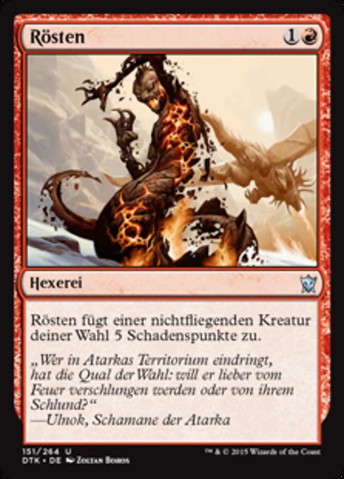 ![]() Variations— Parts— | RoastRoast deals 5 damage to target creature without flying.