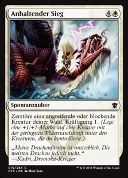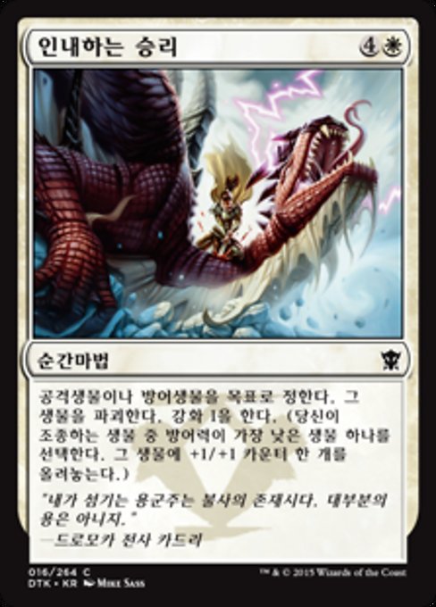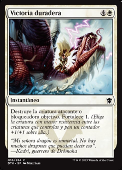 ![]() Variations— Parts— | Enduring VictoryDestroy target attacking or blocking creature. Bolster 1. (Choose a creature with the least toughness among creatures you control and put a +1/+1 counter on it.)
