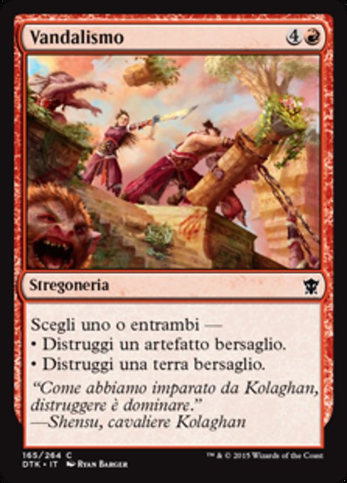 |  Variations— Parts— | VandalizeChoose one or both — • Destroy target artifact. • Destroy target land.