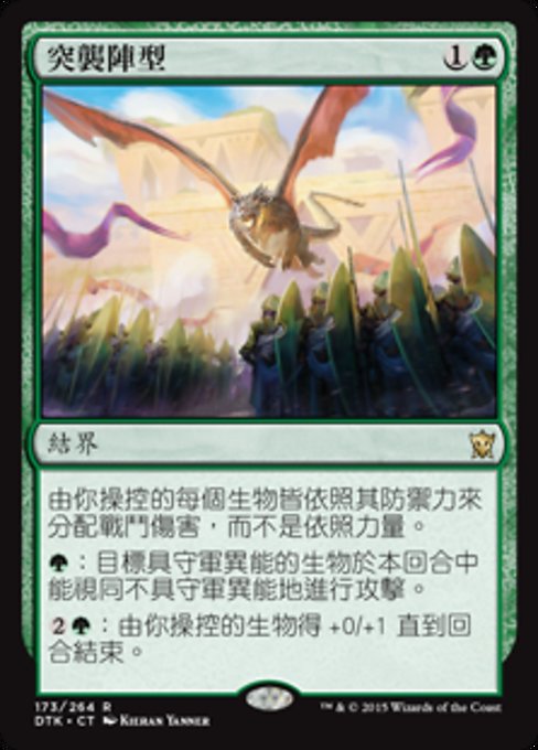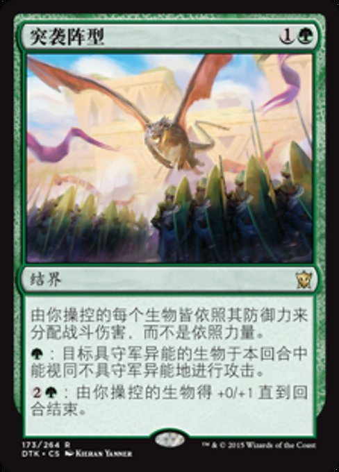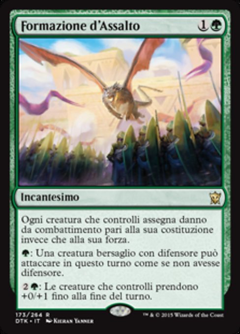 ![]() Variations— Parts— | Assault FormationEach creature you control assigns combat damage equal to its toughness rather than its power.
