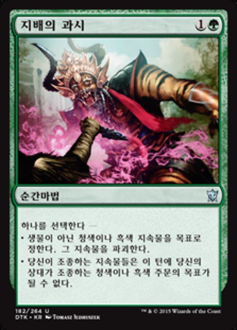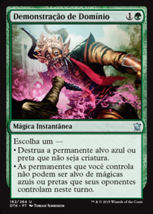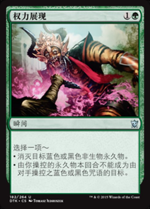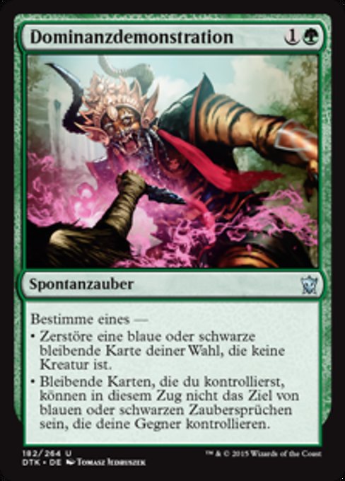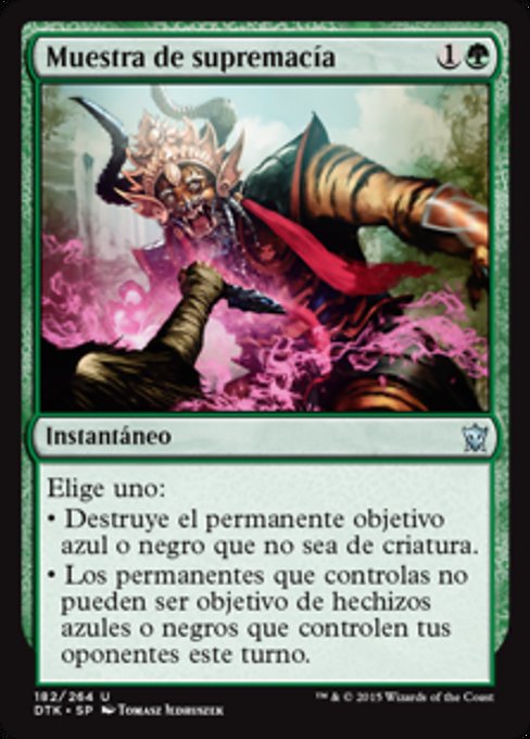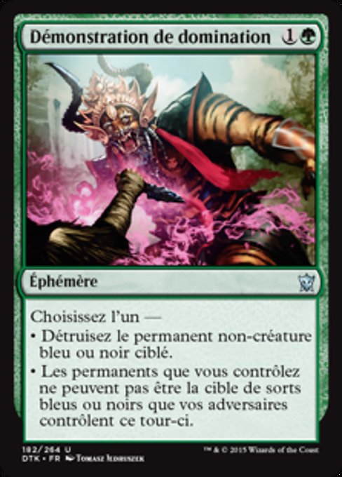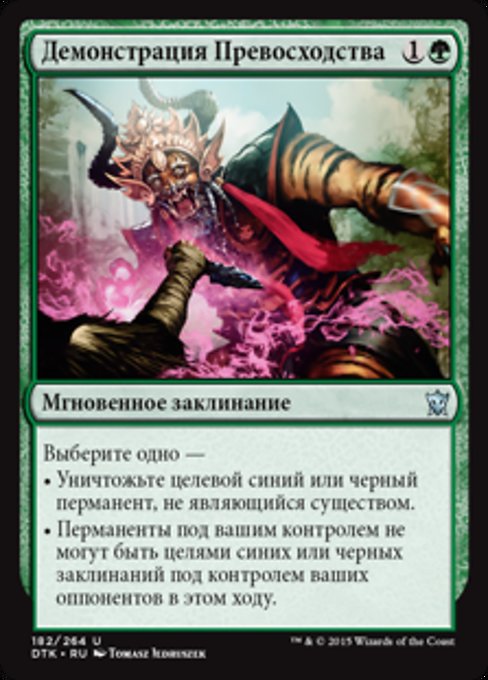 ![]() Variations— Parts— | Display of DominanceChoose one — • Destroy target blue or black noncreature permanent. • Permanents you control can't be the targets of blue or black spells your opponents control this turn.