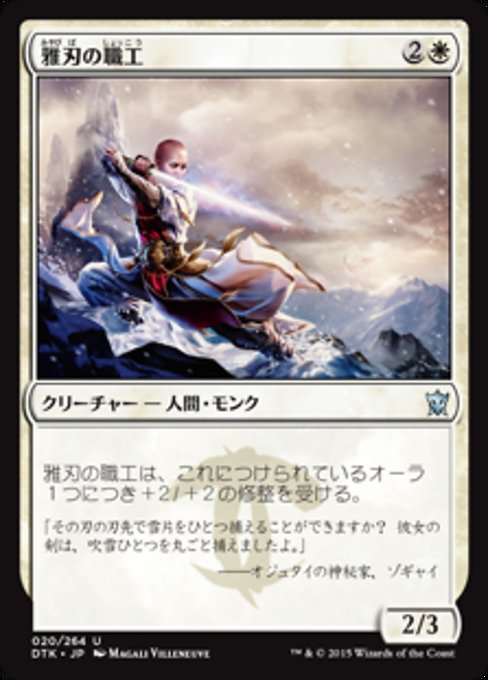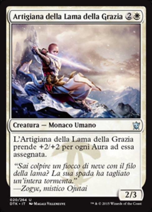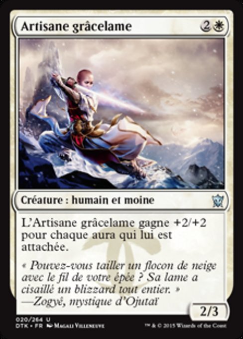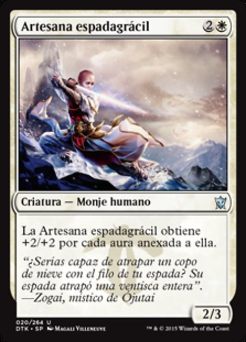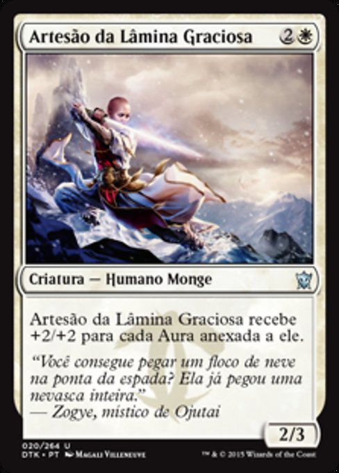 |  Variations— Parts— | Graceblade Artisan2 / 3 This creature gets +2/+2 for each Aura attached to it.