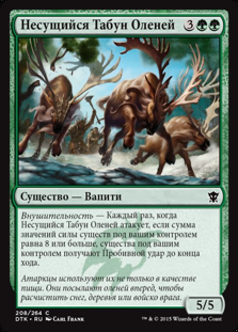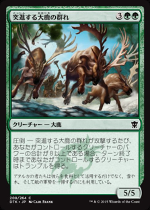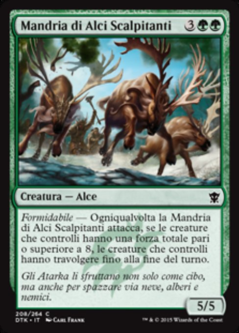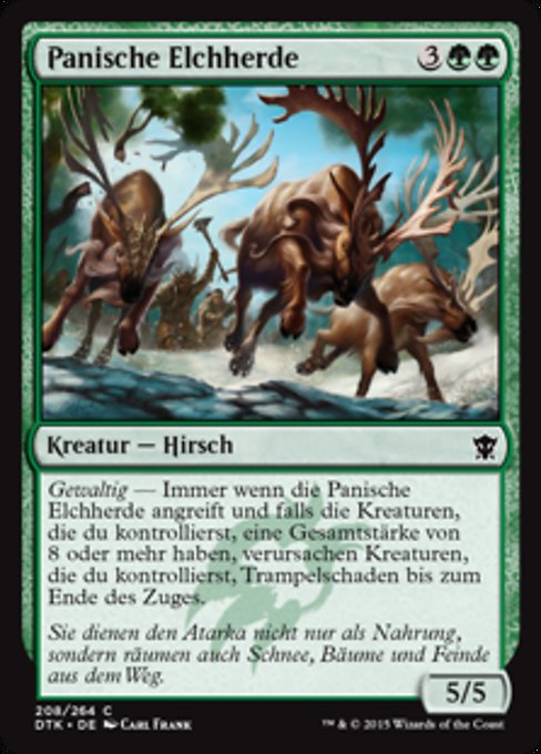 ![]() Variations— Parts— | Stampeding Elk Herd5 / 5 Formidable — Whenever this creature attacks, if creatures you control have total power 8 or greater, creatures you control gain trample until end of turn.