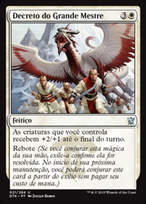 ![]() Variations— Parts— | Great Teacher's DecreeCreatures you control get +2/+1 until end of turn. Rebound (If you cast this spell from your hand, exile it as it resolves. At the beginning of your next upkeep, you may cast this card from exile without paying its mana cost.)