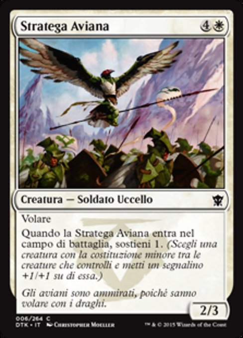 ![]() Variations— Parts— | Aven Tactician2 / 3 Flying When this creature enters, bolster 1. (Choose a creature with the least toughness among creatures you control and put a +1/+1 counter on it.)