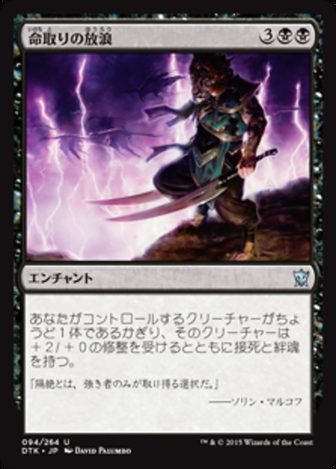 ![]() Variations— Parts— | Deadly WanderingsAs long as you control exactly one creature, that creature gets +2/+0 and has deathtouch and lifelink.