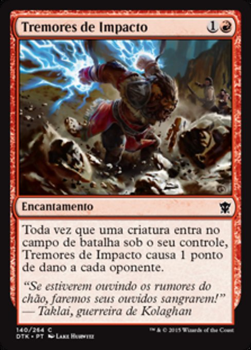 |  Variations— Parts— | Temblores del impactoSiempre que una criatura entre al campo de batalla bajo tu control, los Temblores del impacto hacen 1 punto de daño a cada oponente.