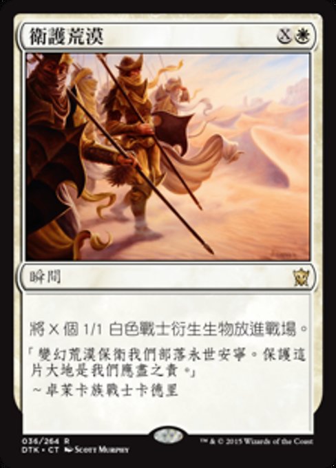 ![]() Variations— Parts— | Defender los yermosPon en el campo de batalla X fichas de criatura Guerrero blancas 1/1.