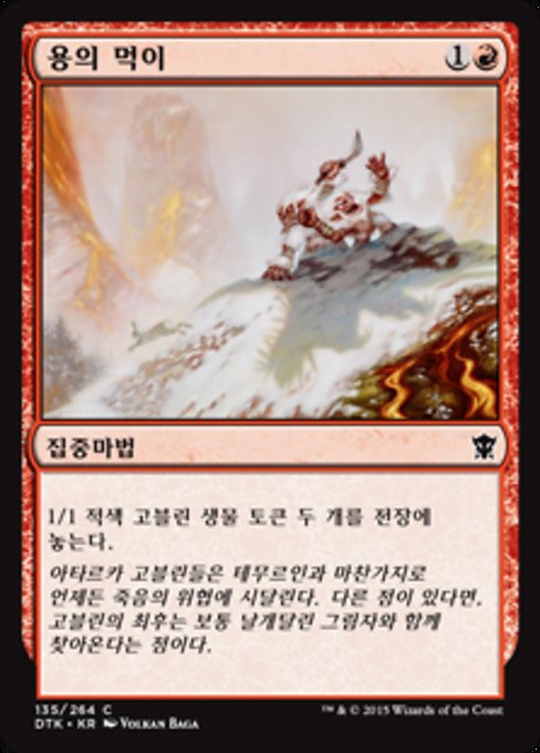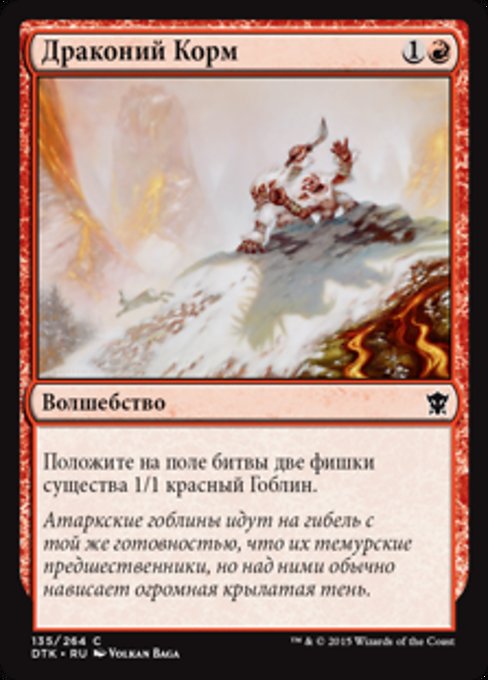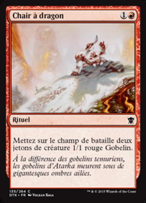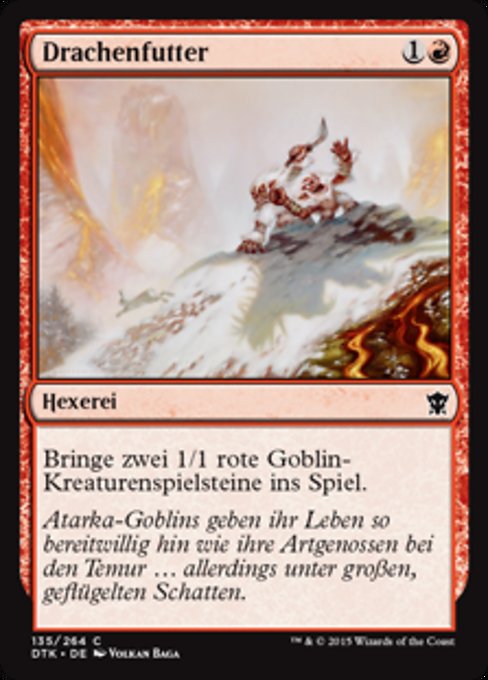![]() Variations— Parts— | Spuntino del DragoMetti sul campo di battaglia due pedine creatura Goblin 1/1 rosse.