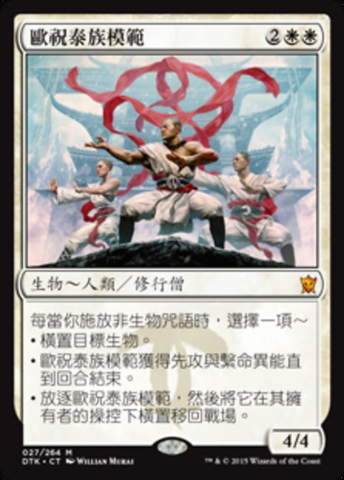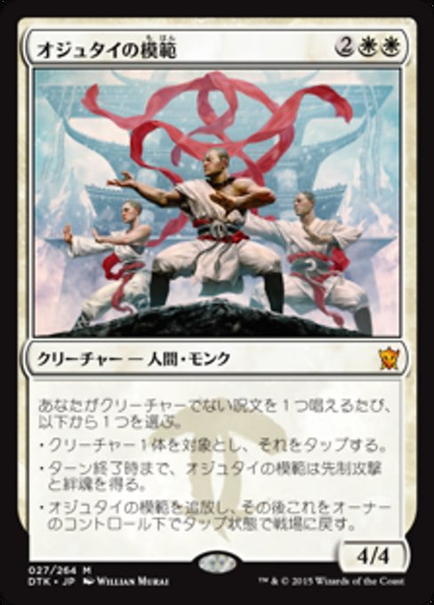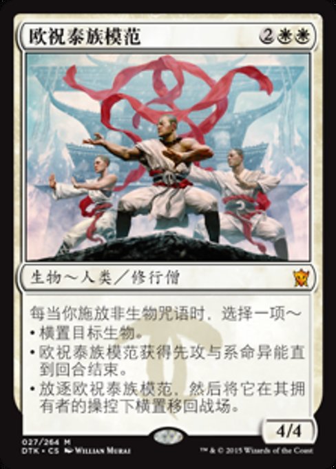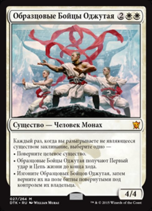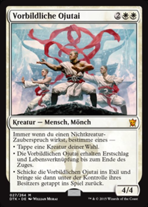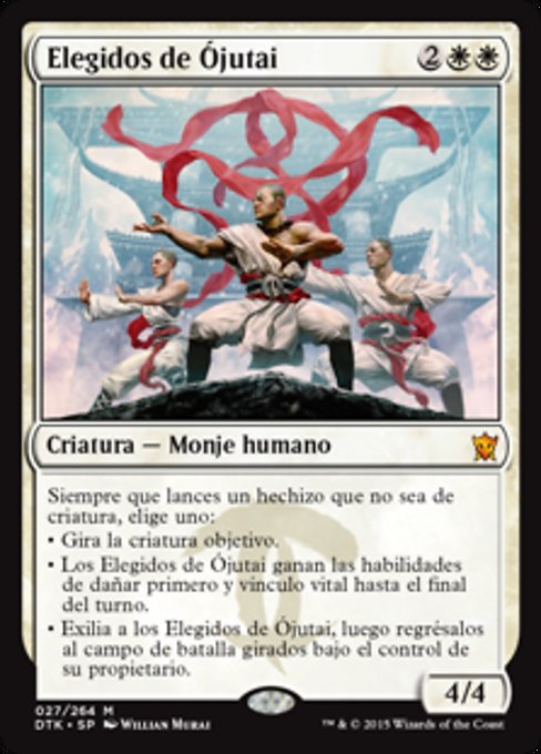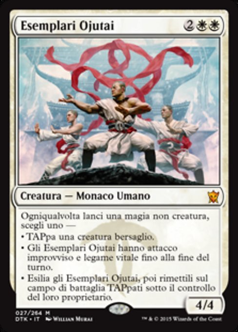 ![]() Variations— Parts— | Esemplari Ojutai4 / 4 Ogniqualvolta lanci una magia non creatura, scegli uno — • TAPpa una creatura bersaglio. • Gli Esemplari Ojutai hanno attacco improvviso e legame vitale fino alla fine del turno. • Esilia gli Esemplari Ojutai, poi rimettili sul campo di battaglia TAPpati sotto il controllo del loro proprietario.