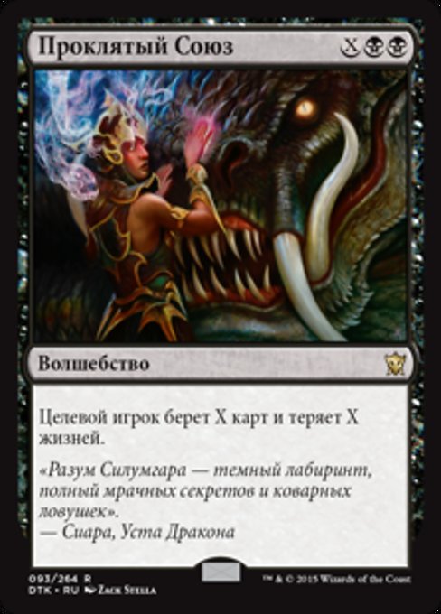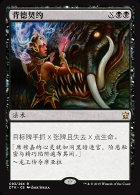 |  Variations— Parts— | Patto DeplorevoleUn giocatore bersaglio pesca X carte e perde X punti vita.