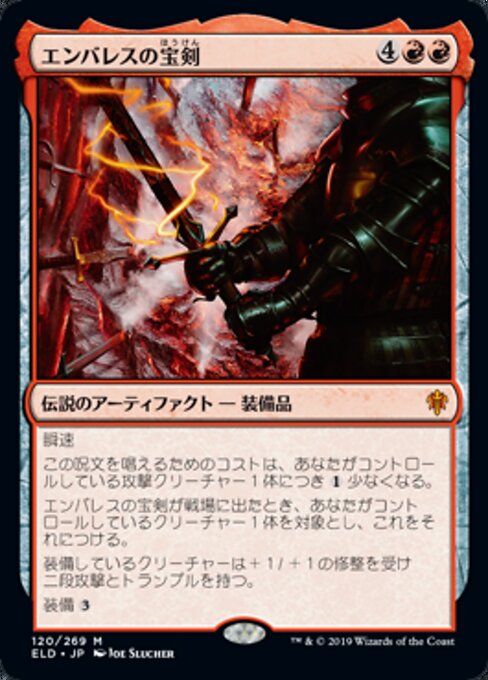 |  Variations : 1Parts— | EmbercleaveFlash This spell costs When Embercleave enters, attach it to target creature you control. Equipped creature gets +1/+1 and has double strike and trample. Equip