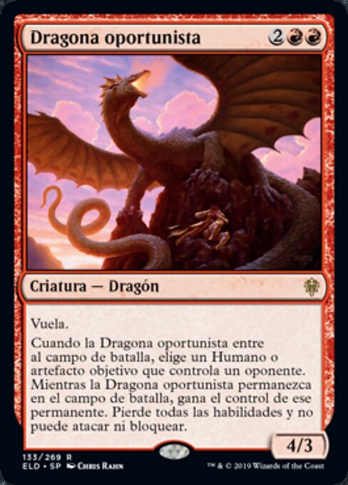 |  Variations : 1Parts— | Opportunistic Dragon4 / 3 Flying When this creature enters, choose target Human or artifact an opponent controls. For as long as this creature remains on the battlefield, gain control of that permanent, it loses all abilities, and it can't attack or block.