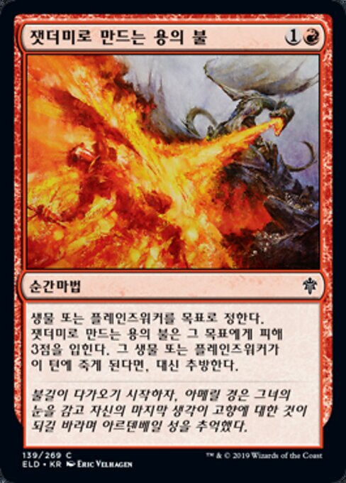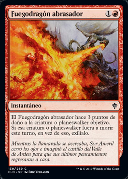 |  Variations— Parts— | Scorching DragonfireScorching Dragonfire deals 3 damage to target creature or planeswalker. If that creature or planeswalker would die this turn, exile it instead.