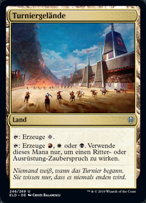 LegalitiesLegal Duel Brawl Penny Legacy Modern Pioneer Vintage Historic Timeless Commander Gladiator Oathbreaker Not Legal Predh Future Pauper Alchemy Standard Oldschool Premodern Standardbrawl Paupercommander RulingsMana produced by the second ability of Tournament Grounds can't be spent to activate abilities, including equip abilities.