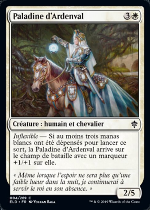 |  Variations— Parts— | Ardenvale Paladin2 / 5 Adamant — If at least three white mana was spent to cast this spell, this creature enters with a +1/+1 counter on it.