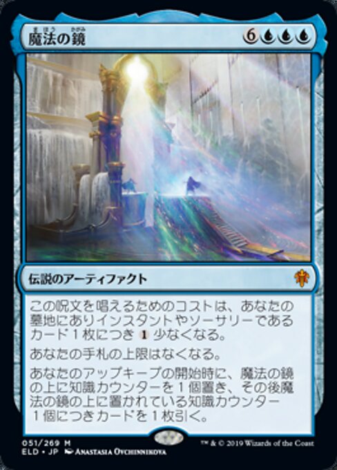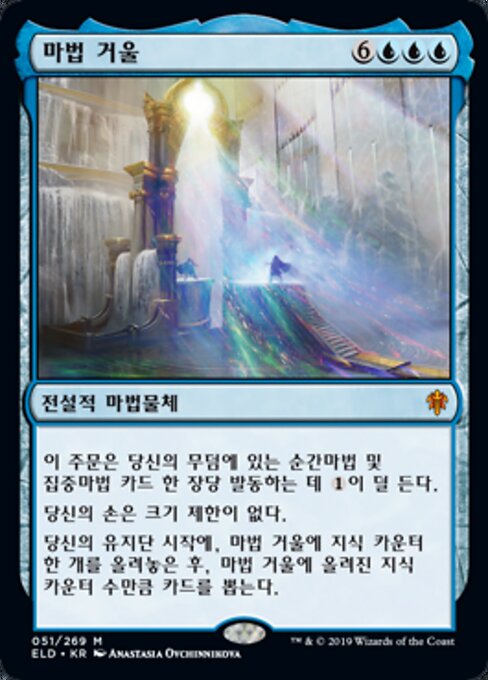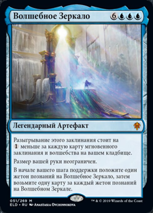 |  Variations : 1Parts— | The Magic MirrorThis spell costs  You have no maximum hand size. At the beginning of your upkeep, put a knowledge counter on The Magic Mirror, then draw a card for each knowledge counter on The Magic Mirror.