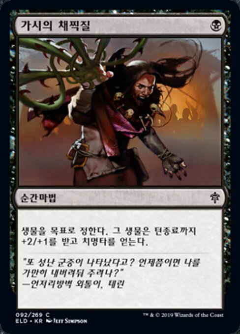 ![]() Variations— Parts— | Lash of ThornsTarget creature gets +2/+1 and gains deathtouch until end of turn.
