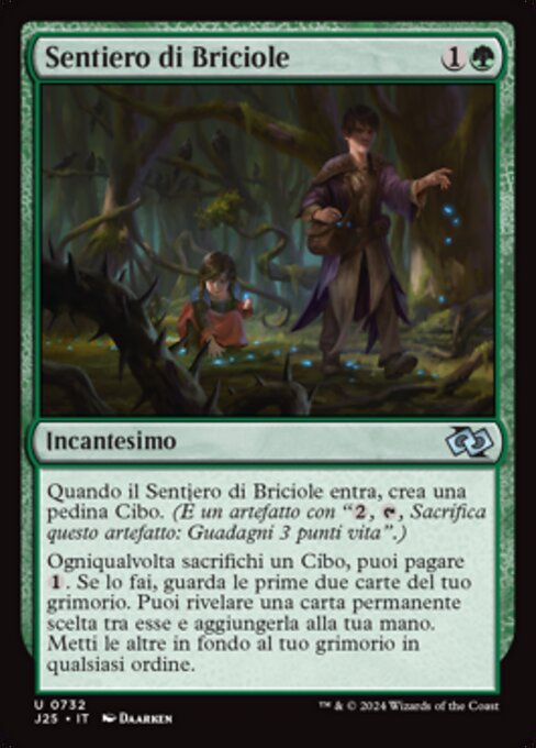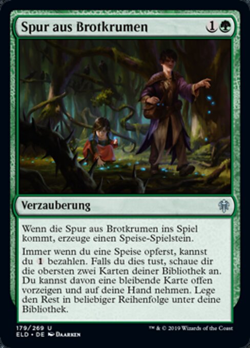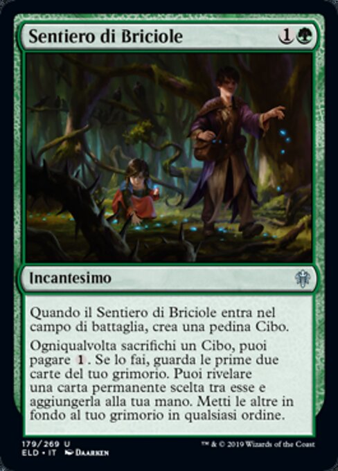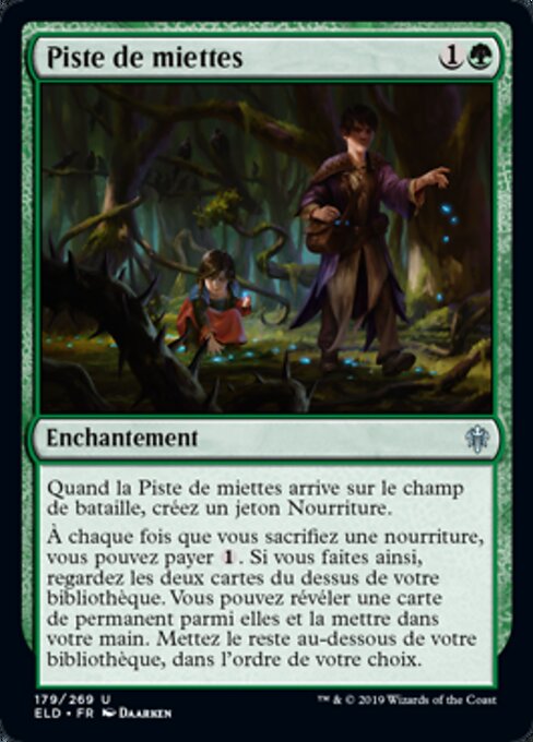 ![]() Variations— Parts— | Sentiero di BricioleQuando il Sentiero di Briciole entra nel campo di battaglia, crea una pedina Cibo. Ogniqualvolta sacrifichi un Cibo, puoi pagare