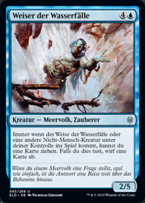 |  Variations— Parts— | Saggio delle Cascate2 / 5 Ogniqualvolta il Saggio delle Cascate o un'altra creatura non Umano entrano nel campo di battaglia sotto il tuo controllo, puoi pescare una carta. Se lo fai, scarta una carta.