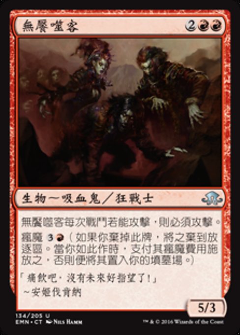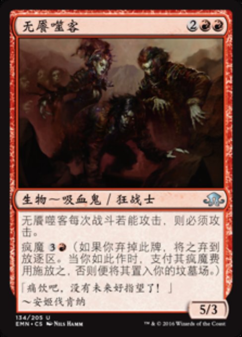 ![]() Variations— Parts— | Insatiable Gorgers5 / 3 This creature attacks each combat if able. Madness