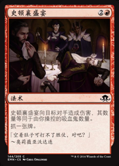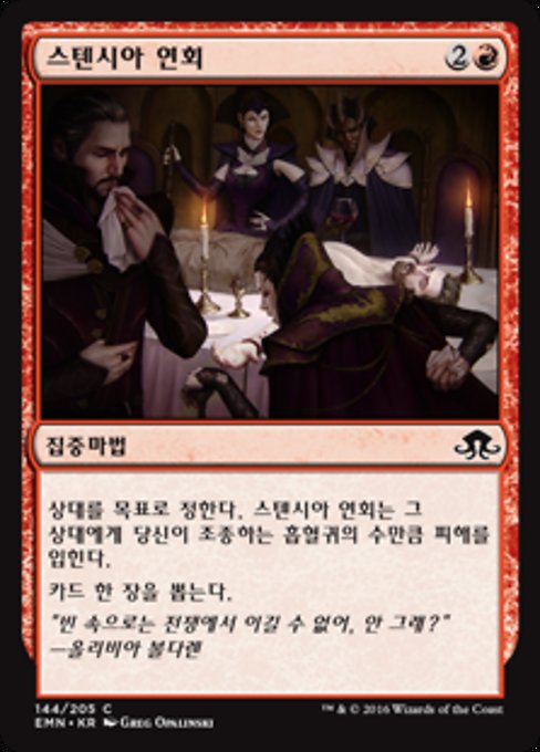 ![]() Variations— Parts— | Stensia BanquetStensia Banquet deals damage to target opponent or planeswalker equal to the number of Vampires you control. Draw a card.