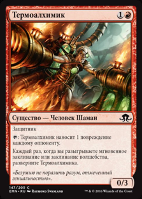 |  Variations— Parts— | Thermo-Alchemist0 / 3 Defender Whenever you cast an instant or sorcery spell, untap this creature.