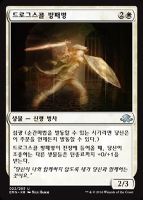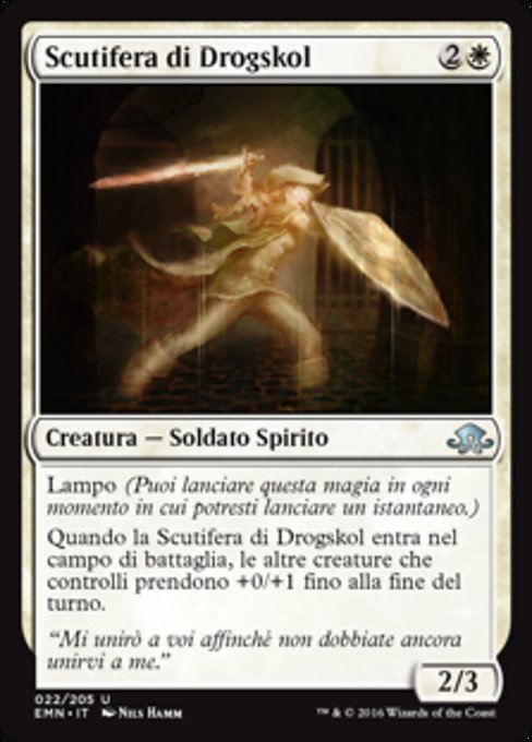 |  Variations— Parts— | Drogskol Shieldmate2 / 3 Flash When this creature enters, other creatures you control get +0/+1 until end of turn.