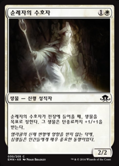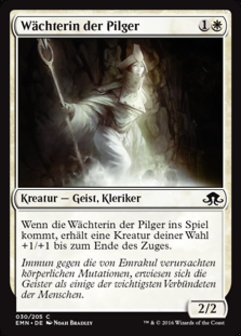 ![]() Variations— Parts— | Guardian of Pilgrims2 / 2 When this creature enters, target creature gets +1/+1 until end of turn.