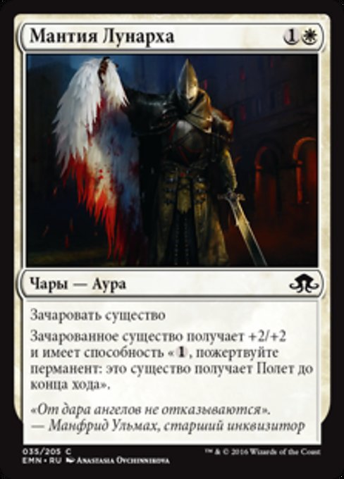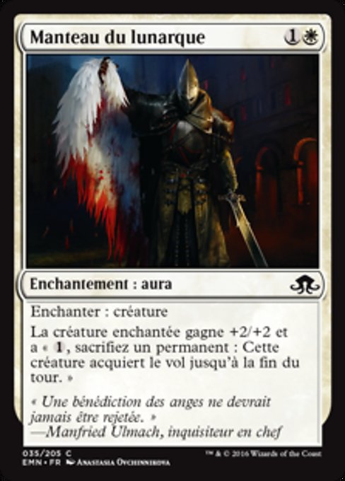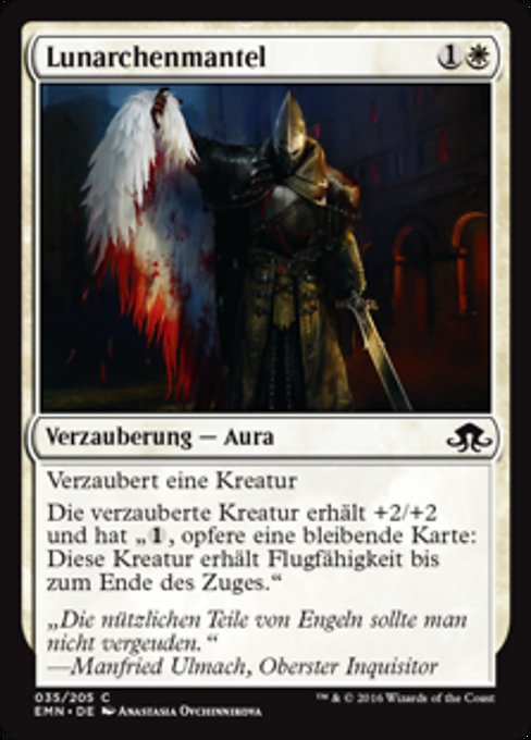 ![]() Variations— Parts— | Lunarch MantleEnchant creature Enchanted creature gets +2/+2 and has "