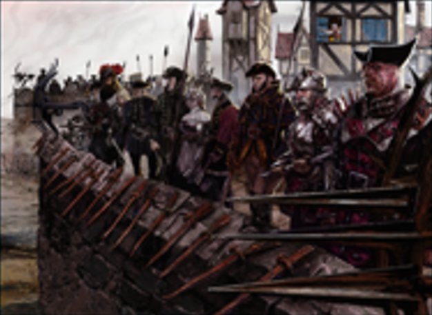 :如果由你擁有且由你操控的永久物中同時有翰威城垛與一個名稱為翰威駐防兵的生物,則放逐它們,然後將它們融合為糾擰鎮區翰威。