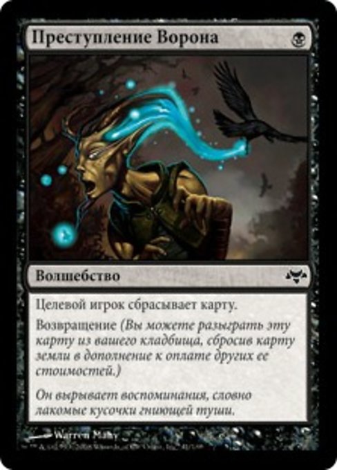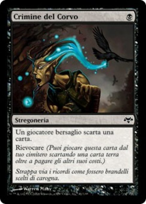 ![]() Variations— Parts— | Raven's CrimeTarget player discards a card. Retrace (You may cast this card from your graveyard by discarding a land card in addition to paying its other costs.)